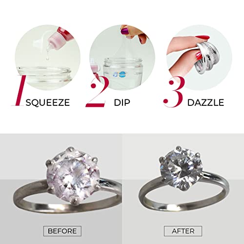 Eenvoudig in gebruik: meng in het reinigingsreservoir enkele druppels Dazzle Drops met warm water, leg je sieraden in de lepel en dompel ze 30 seconden onder De exclusieve formule reinigt je sieraden snel. Borstel hem dan voorzichtig met de reinigingsborstel en spoel hem af